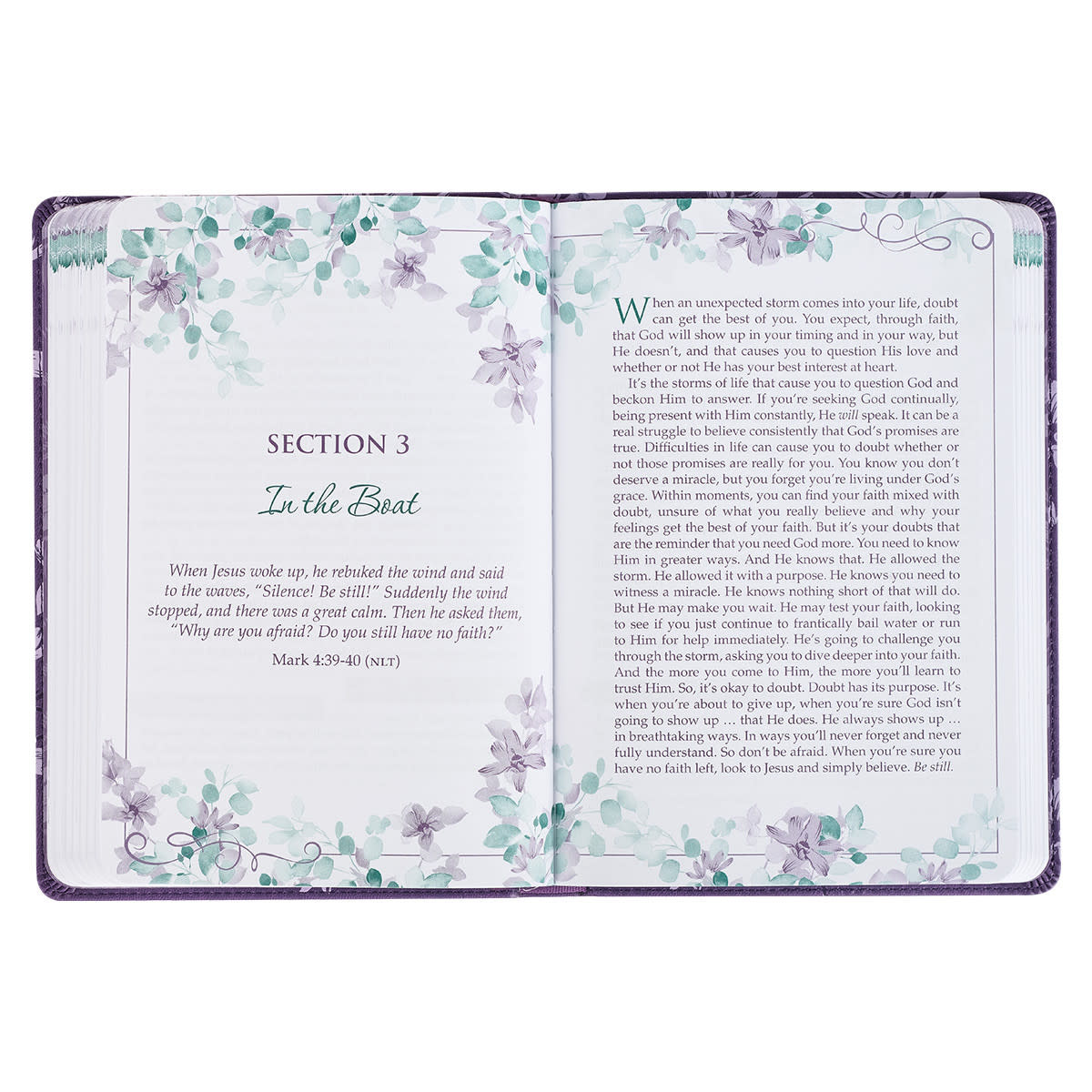 It was in a boat on the Sea of Galilee where the disciples witnessed the miracle of Jesus calming the storm, and it is through the daily readings of A Journey with Jesus Purple Faux Leather Devotional that you will find Jesus calming your storms of life in ways you could never have imaged.
