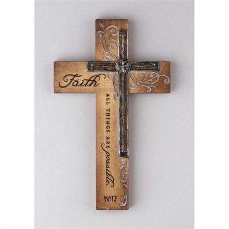 Resin Wall Cross - Faith - All Things Engraved with Faith - all things are possible from Matthew 19:26, this stylish piece has the look of two crosses in one (and if you look closely you will see two more!). Resin; height 9".